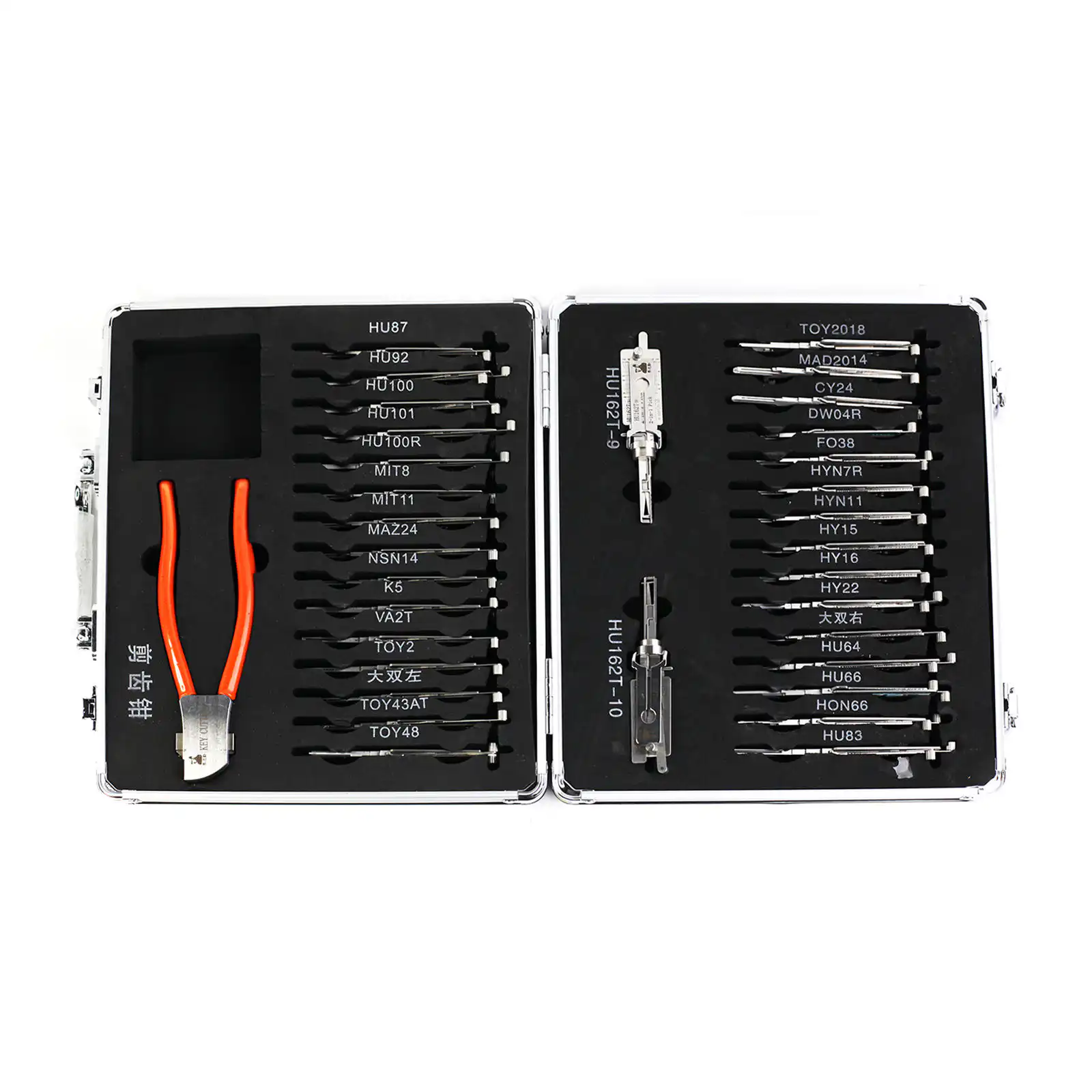 Now introducing the Lishi 32 pieces full set, it comes directly from Mr. Li’s factory, 100% genuine guarantee, FREE toolbox included and also comes with FREE delivery (select the FREE shipping option at checkout, or the cheapest economy shipping method, and we’ll ship by FedEx/DHL by default).